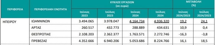 Την μεγαλύτερη μάλιστα αύξηση καταγράφει ο Νομός Ιωαννίνων καθώς για τον Ιούνιο ανέρχεται στο 19,2% και για τον Ιούλιο στο 24,1!