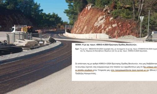 «Σε απάντηση της σχετικής Ερώτησης, σας επισυνάπτουμε το σχετικό έγγραφο της Γενικής Διεύθυνσης Συγκοινωνιακών Υποδομών με το συνημμένο σε αυτό έγγραφο» αναφέρει.