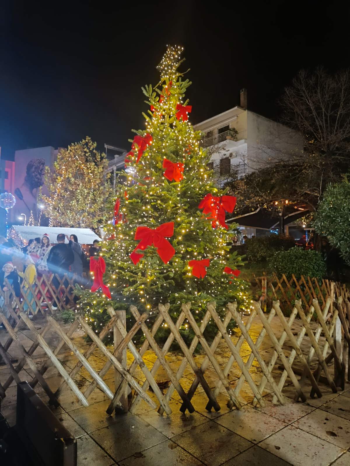 Τα ξύλινα σπιτάκια με τα τοπικά εδέσματα, το ζεστό κρασί και τη σοκολάτα, το καρουζέλ για τα παιδιά, δημιούργησαν ένα παραμυθένιο σκηνικό, ενώ η Φιλαρμονική πρόσφερε χριστουγεννιάτικες μελωδίες που έδωσαν τον τόνο του γιορτινού πνεύματος.