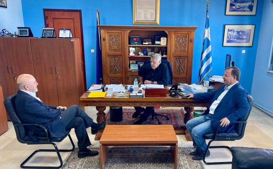 O υφυπουργός είχε συνάντηση στα γραφεία της Περιφερειακής Ενότητας Θεσπρωτίας με τον Αντιπεριφερειάρχη κ. Πιτούλη, όπου συζητήθηκε η ανάπτυξη της περιοχής, η κατασκευή του διαδρόμου Orient East Med, και η μετατροπή του λιμανιού της Ηγουμενίτσας σε πολυτροπική πλατφόρμα ανεφοδιασμού.