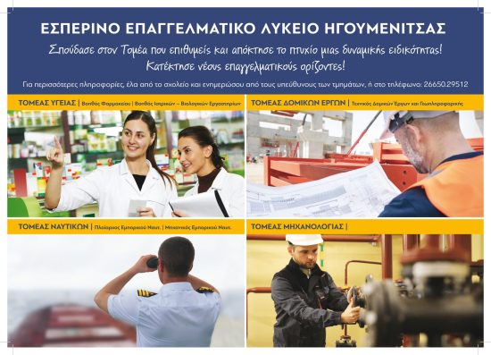 Για περισσότερες πληροφορίες απευθυνθείτε στο τηλέφωνο 2665029512 και στο email  του σχολείου mail@epal–esp–igoum.thesp.sch.gr