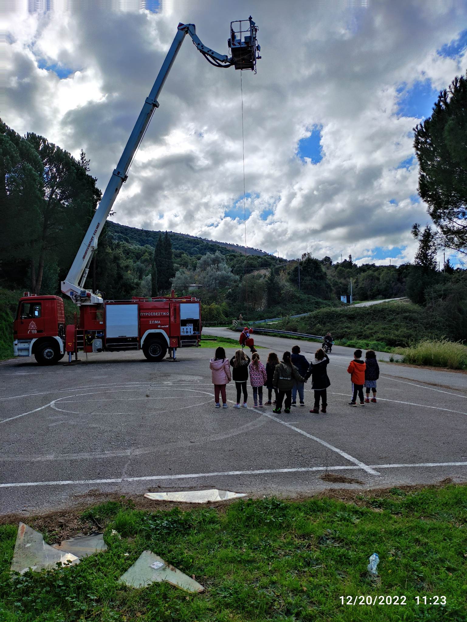 Καθώς το σχολείο δε διαθέτει… καμινάδα, ο αγαπημένος Άγιος των παιδιών ζήτησε τη συνδρομή της Πυροσβεστικής υπηρεσίας Ηγουμενίτσας, οι οποία άμεσα ανταποκρίθηκε. Έτσι λίγο μετά τις 11 το πρωί της Τετάρτης το γερανοφόρο όχημα έφερε τον Άγιο στο μικρό πλάτωμα του δάσους, κάτω από το σχολείο όπου τον υποδέχτηκαν με ενθουσιασμό και μελομακάρονα οι μικροί μαθητές.