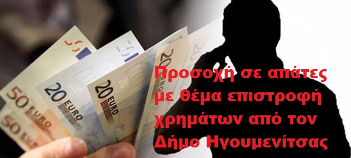 Το τελευταίο διάστημα έγιναν αναφορές για κακόβουλες ενέργειες ψεύτικης τηλεφωνικής επικοινωνίας ή/και παραπλανητικής ηλεκτρονικής αλληλογραφίας, με θέμα ότι δικαιούστε επιστροφή χρημάτων από το Δήμο Ηγουμενίτσας.