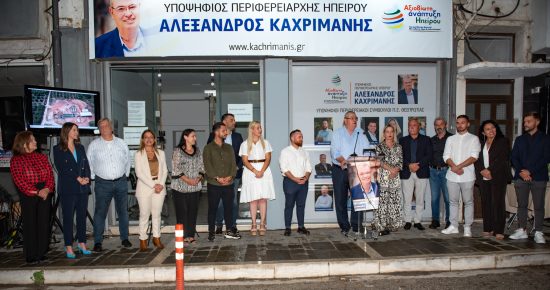 Εκτενείς αναφορές στα έργα που υλοποιούνται στην Π.Ε. Θεσπρωτίας, αλλά και σε αυτά που έχουν δρομολογηθεί για την επόμενη αυτοδιοικητική περίοδο, έκανε ο νυν και εκ νέου υποψήφιος Περιφερειάρχης κ. Αλέξανδρος Καχριμάνης, κατά τη διάρκεια των εγκαινίων του Εκλογικού Κέντρου της «Αξιοβίωτης Ανάπτυξης Ηπείρου» που έγιναν χθες βράδυ στην Ηγουμενίτσα.