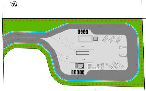 • Έργα υποδομής (πύλη εισόδου-περίφραξη έργου, οικίσκος εισόδου, κτίριο γενικής χρήσης, υπόστεγο, δεξαμενή πλύσης-ύδρευσης-πυρόσβεσης, στεγανή Δεξαμενή Λυμάτων),