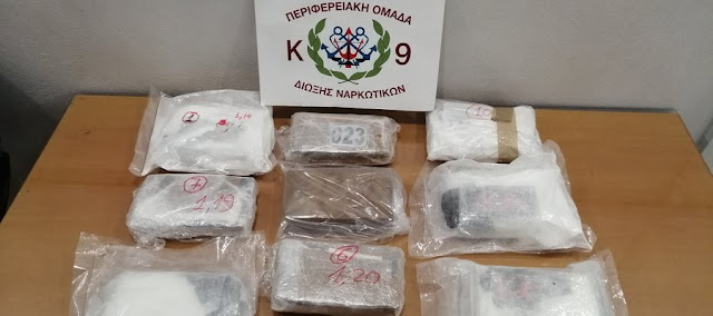 Συγκεκριμένα, σε έλεγχο που διενεργήθηκε από στελέχη της Περιφερειακής Ομάδας Δίωξης Ναρκωτικών (Π.Ο.ΔΙ.Ν.) και στελεχών του Γραφείου Ασφάλειας της οικείας Λιμενικής Αρχής, εντός του λιμένα εξωτερικού Ηγουμενίτσας σε Φ/Γ όχημα με οδηγό τον ανωτέρω, το οποίο εκφορτώθηκε από Ε/Γ -Ο/Γ πλοίο προερχόμενο από την Ανκόνα Ιταλίας, εντοπίστηκε στην αριστερή παλετοθήκη του επικαθήμενου, κατόπιν ένδειξης του σκύλου ανίχνευσης ναρκωτικών ουσιών «ΒΛΑΝΤ» ποσότητα κοκαΐνης, διαφόρων λογοτύπων, συσκευασμένη σε δέκα (10) νάιλον συσκευασίες, συνολικού μικτού βάρους έντεκα κιλών και πεντακοσίων σαράντα γραμμαρίων (11,540 kgs).