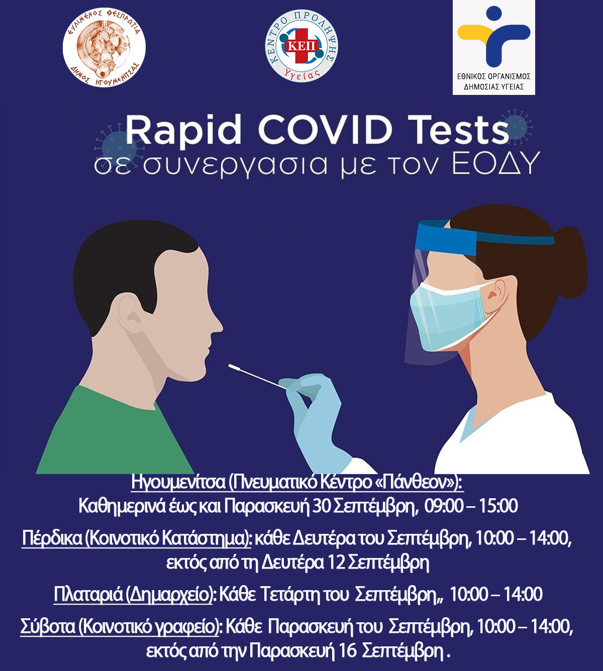 Το πρόγραμμα των δωρεάν rapid testγια τον Σεπτέμβριο
